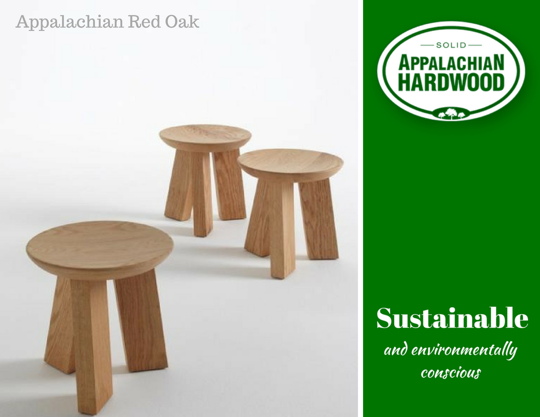 The Ludo Stool, in American red oak. Designed by Terry Dwan for RIVA 1920.